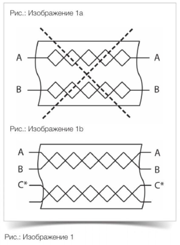 Стандарт определяет только электрические параметры интерфейсов передатчиков и приемников, но не содержит предписаний относительно топологии или подлежащих использованию кабелей. Эту информацию можно получить либо в TSB89 «Руководстве по применению для TIA / EIA-485-A», либо в руководствах изготовителей модулей драйверов RS485 таких, как Texas Instruments или Maxim. Согласно модели OSI (Эталонная модель взаимодействия открытых систем)* описывается только «физический слой», а не протокол. Можно выбрать любой протокол, например, Modbus RTU, Profibus, BACnet и т.д. Обмен данными между передатчиком и приемником осуществляется по экранированному витому кабелю, т.е. по кабелю типа «витая пара». При Рис.: Изображение 1 этом для A и B можно использовать только одну пару (рис.: Изображение 1b). Если интерфейс не изолирован гальванически, необходимо стандартное подключение (рис.: Изображение 1b). Об этом будет рассказано далее.