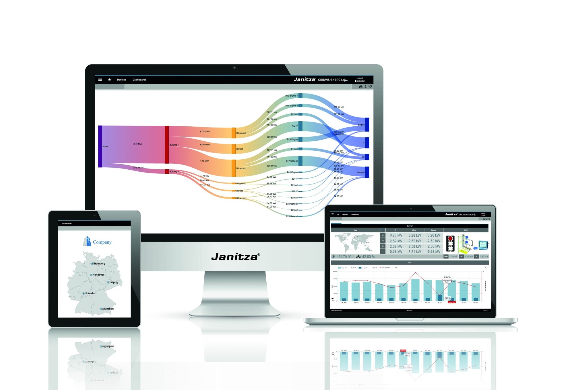 Базовый пакет программы GridVis (GridVis-Basic) бесплатно поставляется вместе с измерительными устройствами Janitza. С помощью этого пакета, в частности, можно: