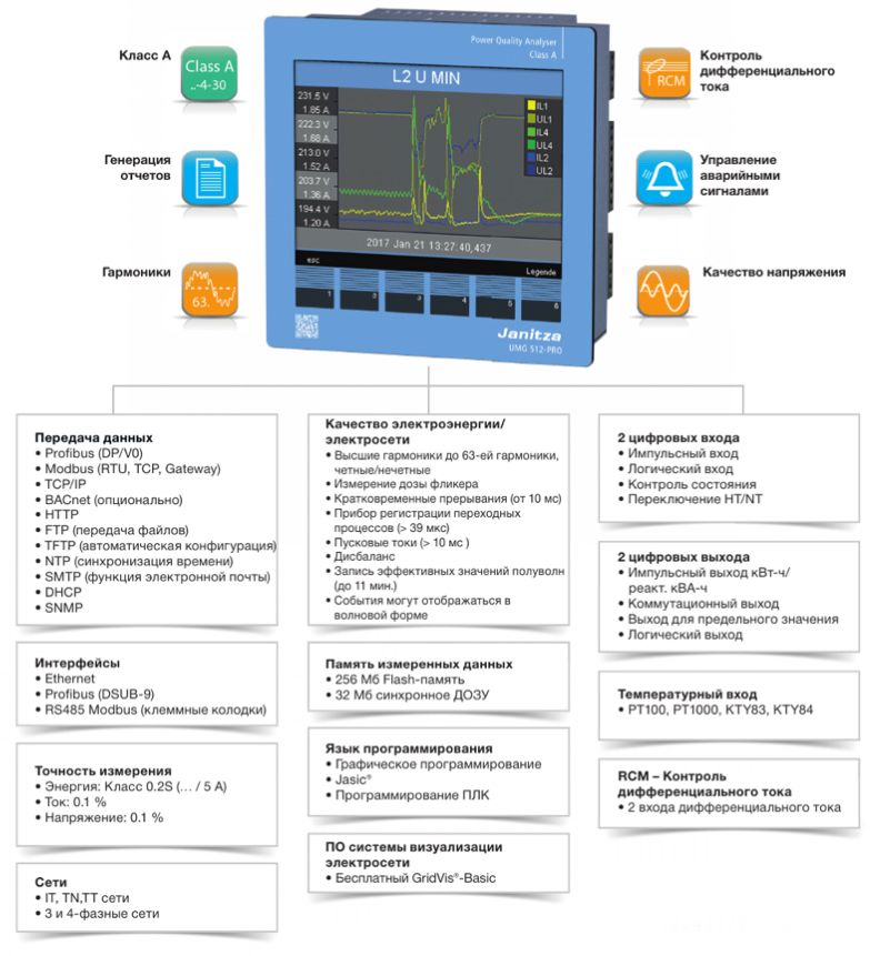 • Непрерывный контроль качества электроэнергии• Анализ высших гармоник при возникновении проблем в электросети
