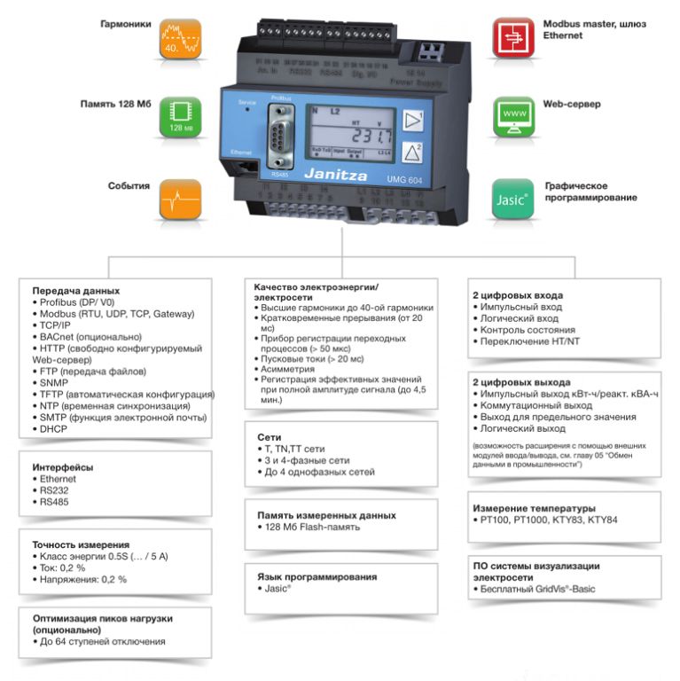 • Готовые приложения из библиотеки Janitza