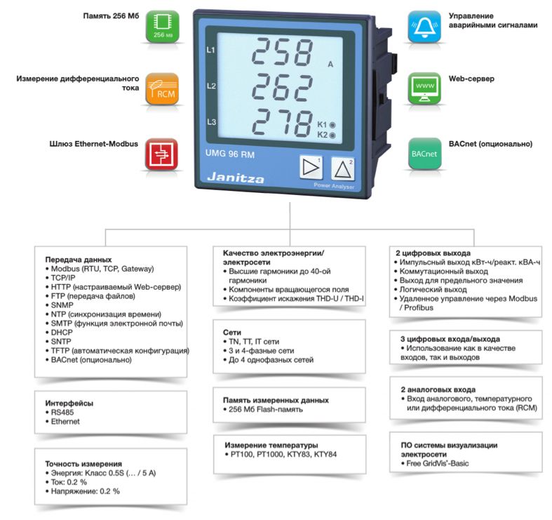 • Непрерывная регистрация показателей энергии и профилей нагрузки• Огромное значение для вопросов энергоэффективности, а также для правильного расчета установок для распределения энергии