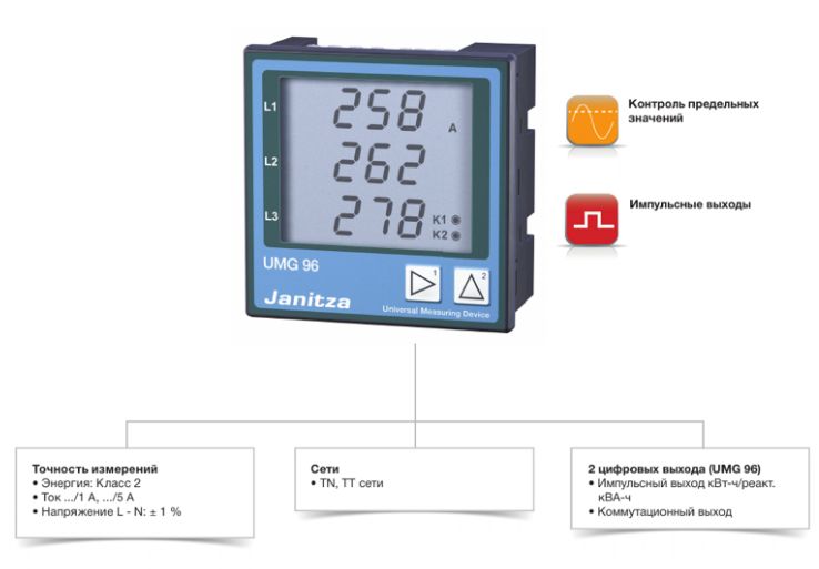 • Соответствующий выход реагирует при превышении или падении ниже предельных значений