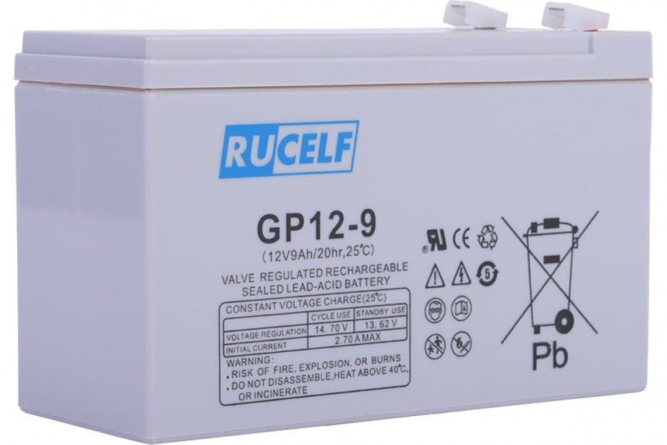 RUCELF GP 12-9 — надёжная герметичная батарея, изготовленная по технологии AGM (Absorbent Glass Mat). Идеально подходит для использования в источниках бесперебойного питания (ИБП), охранных и телекоммуникационных системах, а также другом оборудовании, требующем стабильного электропитания.