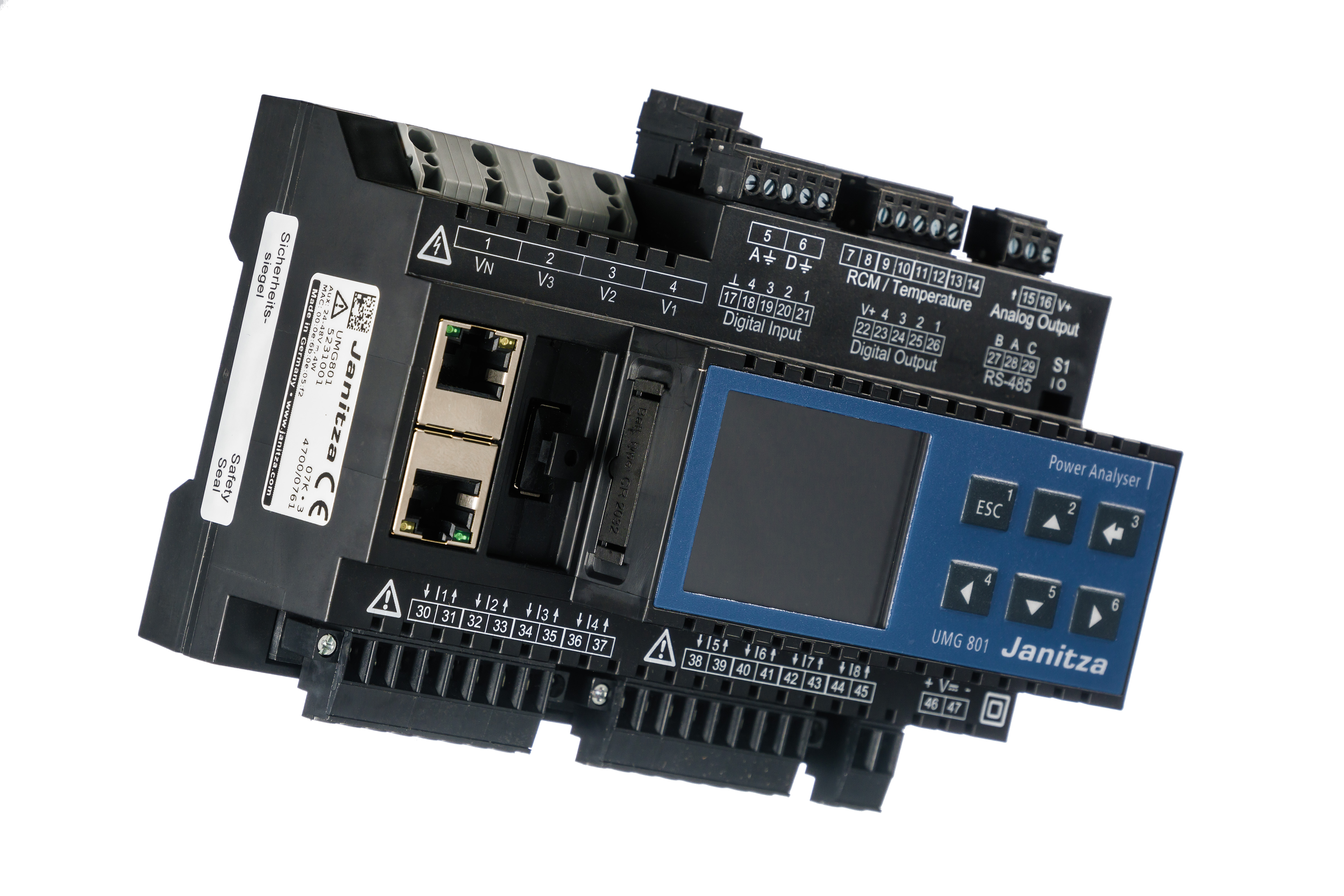 UMG 801 — профессиональный модульный анализатор электроэнергии от бренда JANITZA (Германия), предназначенный для установки на DIN-рейку. Оптимально подходит для задач энергоменеджмента и контроля качества электроэнергии на промышленных и коммерческих объектах, соответствует требованиям ISO 50001.
